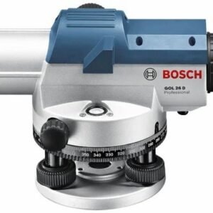 Bosch optical level GOL32D professional extremely robust ideal for outdoor use designed for outdoor use due to sturdy metal housing with dust and splash protection (ip54) robust design with built in target collimator and integrated circular vial compensator lock for safe transport target collimator for rough alignment penta prism makes it easy to read the circular vial large focusing knob for easy alignment fast aperture for excellent staff reading high precision (1mm/30 m) over long distances endless degree/angle setting using knobs on both sides with friction braked rotation erect image technical specifications unit of measure: 360 degrees leveling accuracy: 1mm at 30 m tripod thread: 5/8 inch length: 215 mm width: 135 mm height: 145 mm. Set consists of GOL32D auto level, heavy duty tripod stand