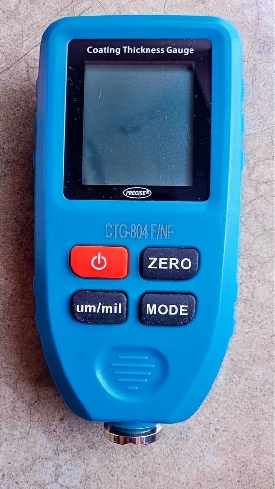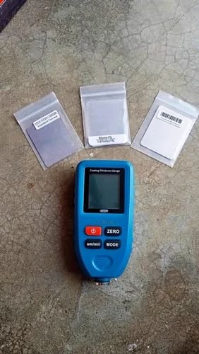 - Paint depth thickness gauge with the large LCD display shows metal type, working mode, number, battery status, and readings in µm