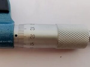Outside Micrometers are used for measuring the thickness or outside diameter of small parts. … To ensure an accurate measurement, the measuring faces of a micrometer must be both flat and parallel. Micrometer measuring faces (anvil and spindle) are normally faced with carbide to reduce the wear caused by repeated use. To read the micrometer in thousandths, multiply the number of vertical divisions visible on the sleeve by 0.025″, and to this add the number of thousandths indicated by the line on the thimble which best coincides with the central long line on the sleeve