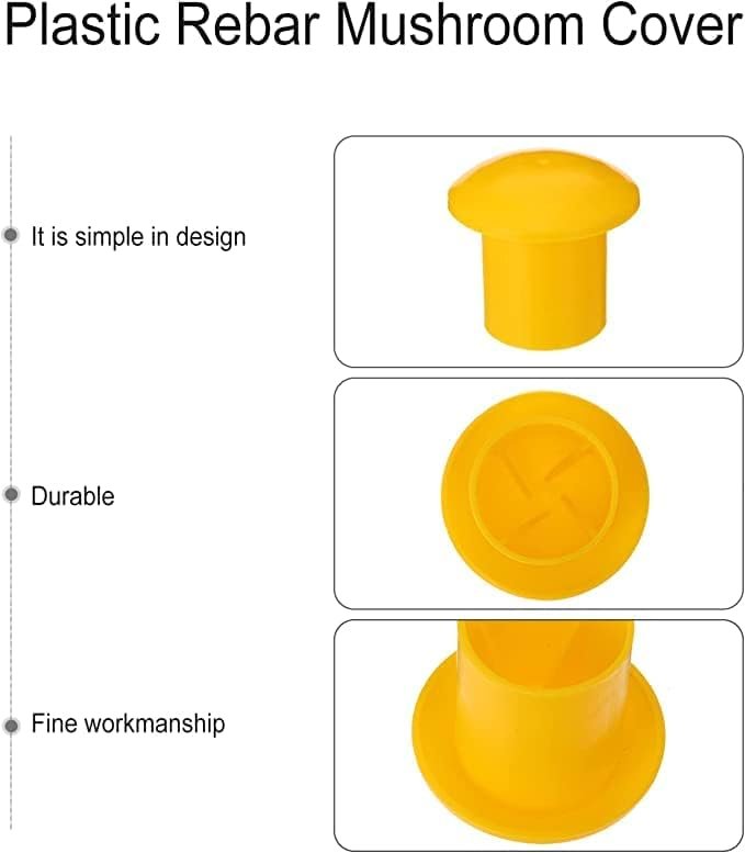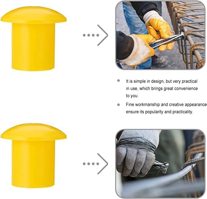 Yellow Rebar Safety Caps – Pack of 100 | Plastic Mushroom Cover | Fits 8mm – 16mm Rebar for Enhanced Construction Site Safety (8mm -16mm) Brand: Generic